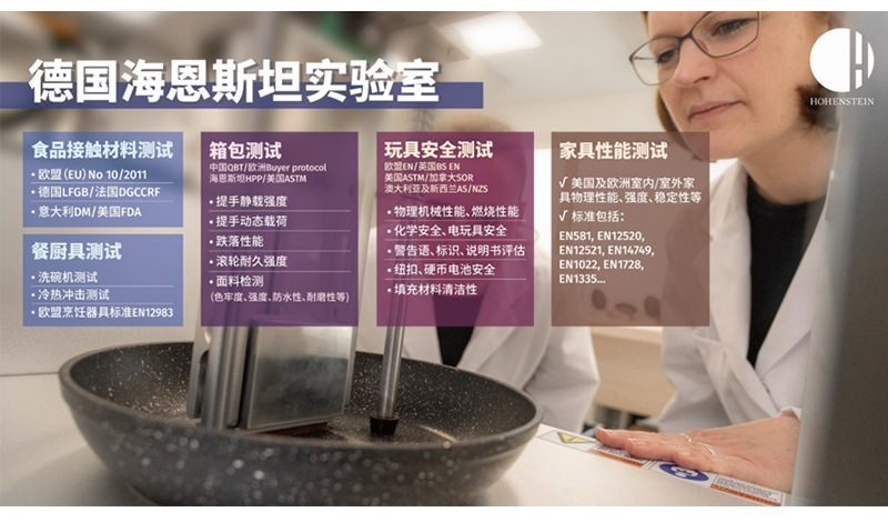 海恩斯坦大中华区上海&香港实验室完全遵循德国总部实验室的测试标准与方法,可基于全球多国法规标准,为各类轻工产品提供化学安全、机械安全、适用性、食品接触材料安全性等广泛的合规测试服务。并且,通过测试的产品可获得海恩斯坦颁发的质量标签作为产品安全性的中立证明及宣传工具。